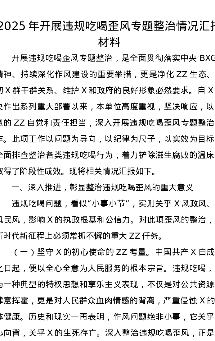 2025年开展违规吃喝歪风专题整治情况汇报材料