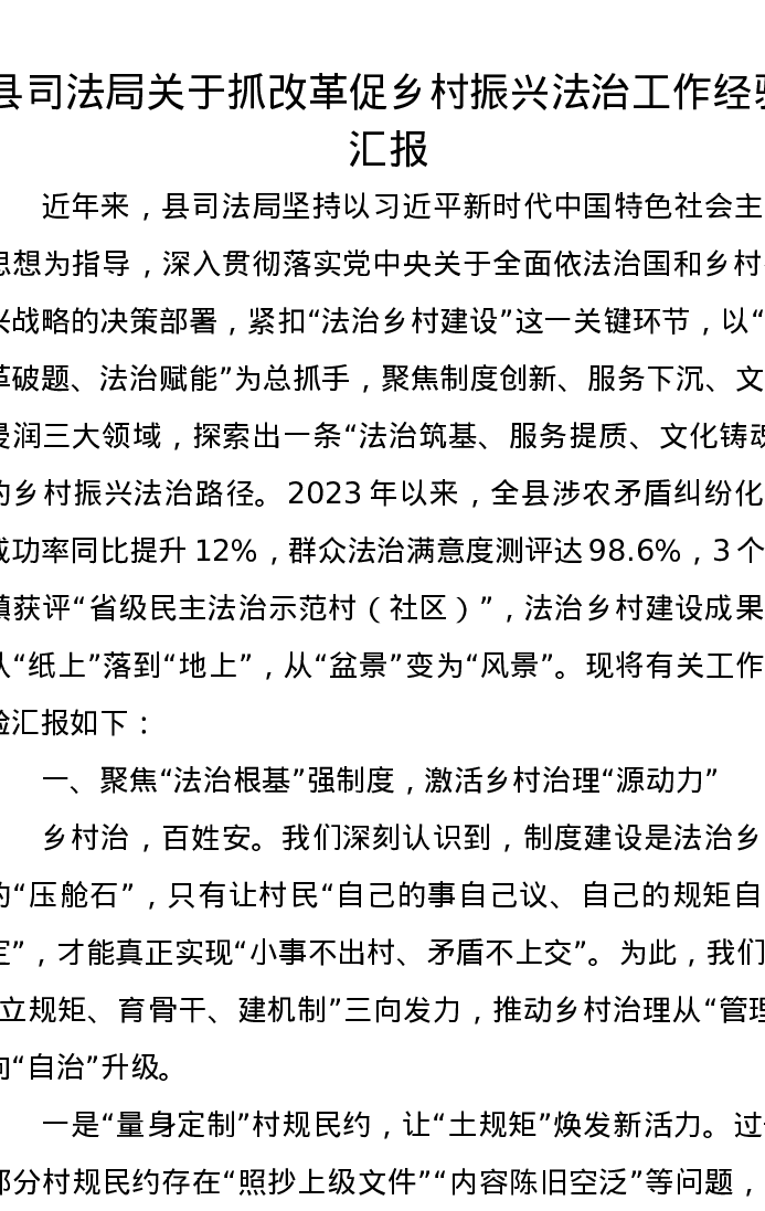 县司法局关于抓改革促乡村振兴法治工作经验汇报