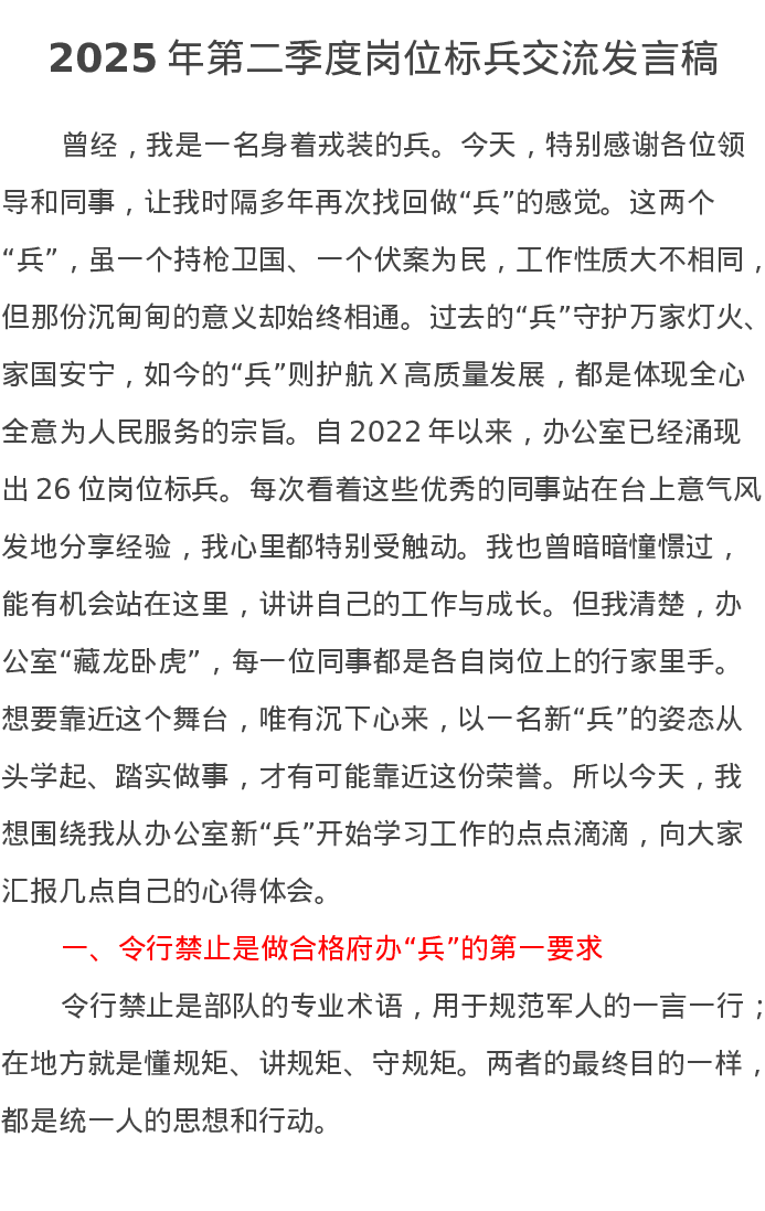 2025年第二季度岗位标兵交流发言稿
