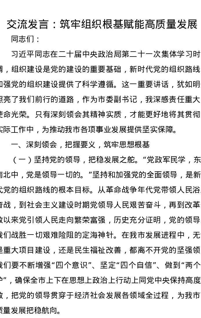 交流发言:筑牢组织根基 赋能高质量发展