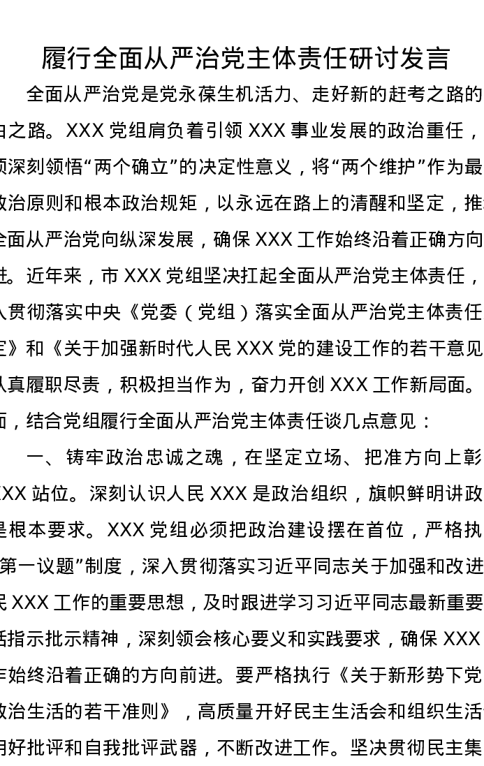 履行全面从严治党主体责任研讨发言