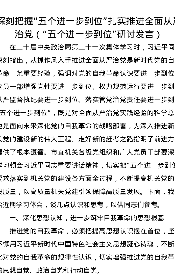 深刻把握“五个进一步到位”扎实推进全面从严治党(“五个进一步到位”研讨发言)