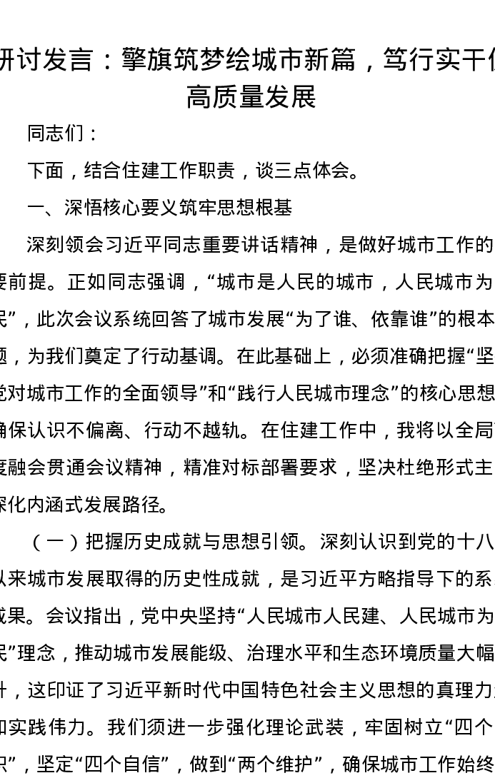 研讨发言:擎旗筑梦绘城市新篇,笃行实干促高质量发展
