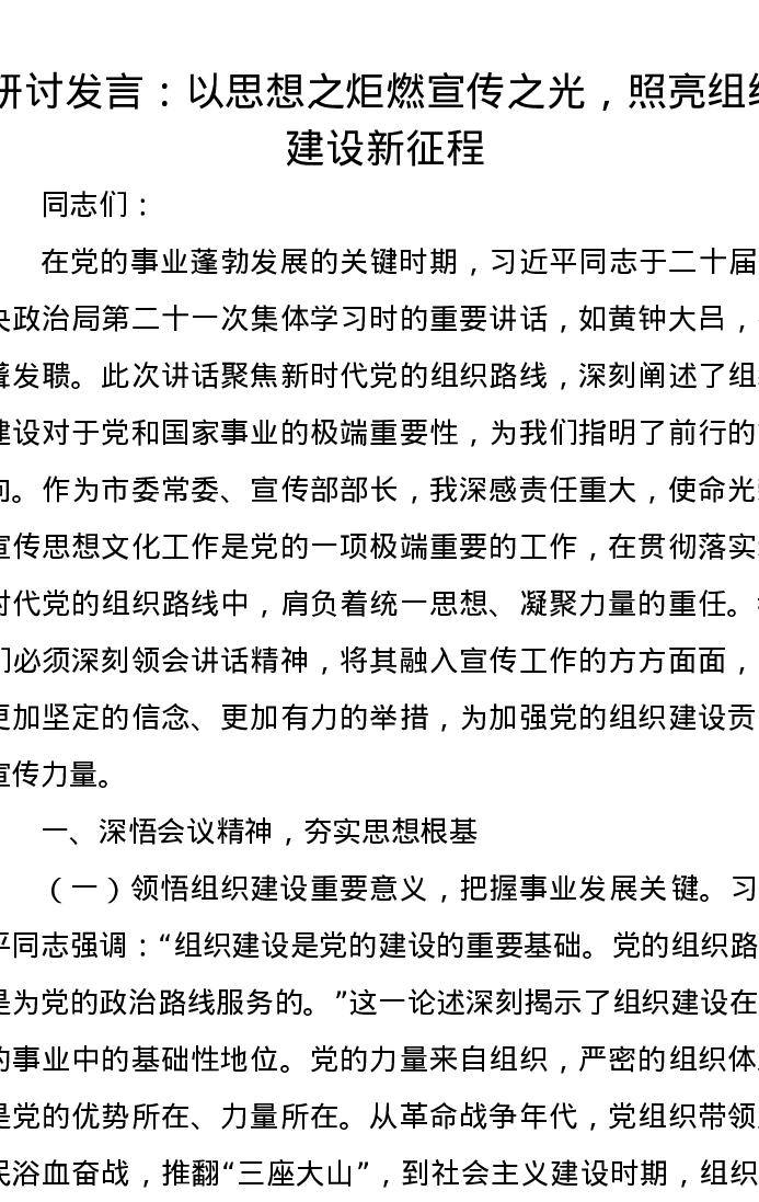 研讨发言:以思想之炬燃宣传之光,照亮组织建设新征程