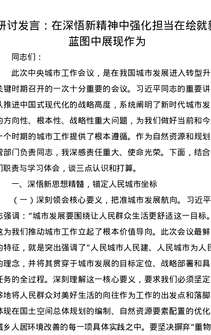 研讨发言:在深悟新精神中强化担当 在绘就新蓝图中展现作为