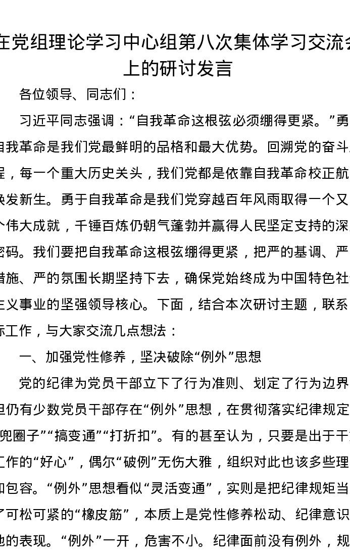 在党组理论学习中心组第八次集体学习交流会上的研讨发言
