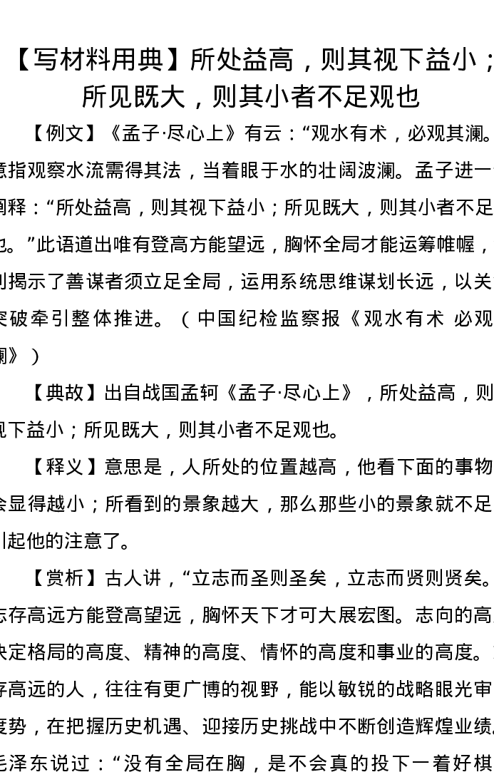 【写材料用典】所处益高,则其视下益小;所见既大,则其小者不足观也