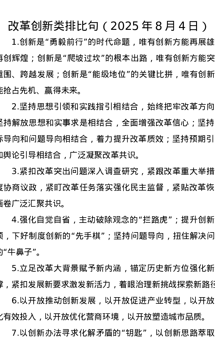 改革创新类排比句(2025年8月4日)