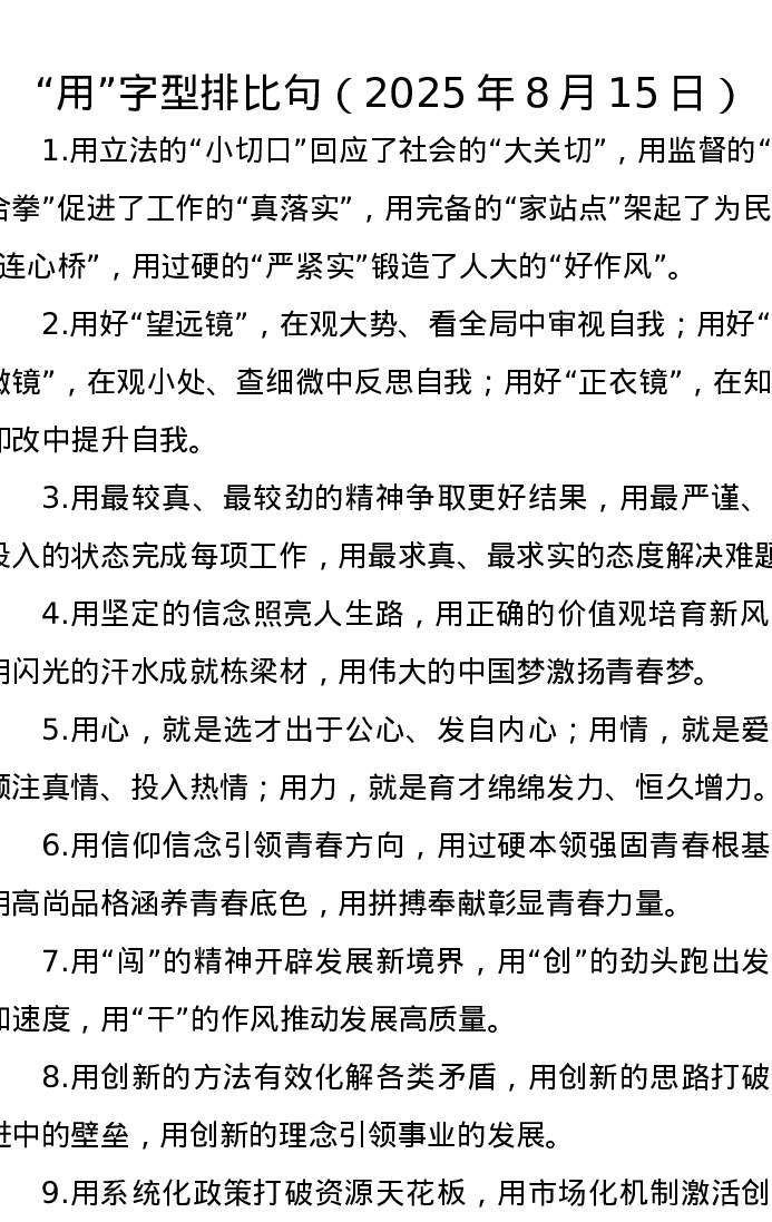 “用”字型排比句(2025年8月15日)
