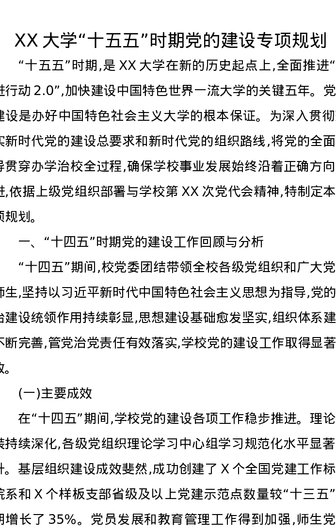 XX大学“十五五”时期党的建设专项规划