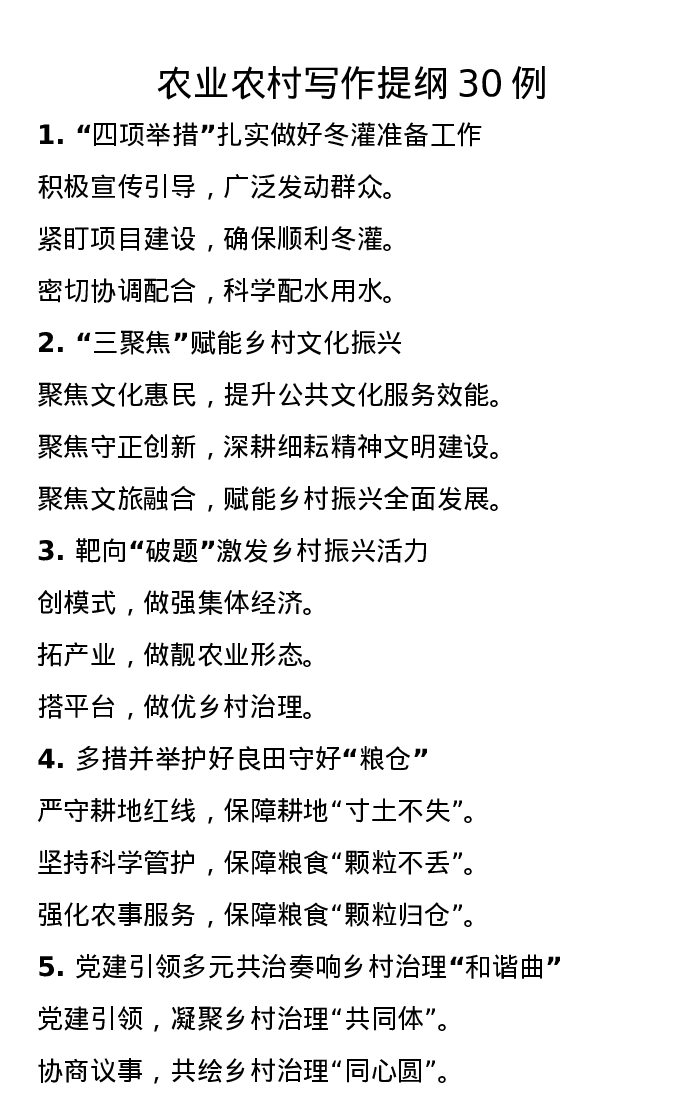 农业农村写作提纲30例