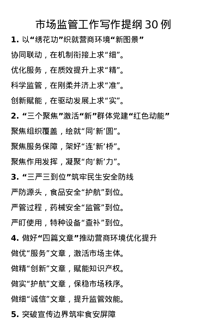 市场监管工作写作提纲30例