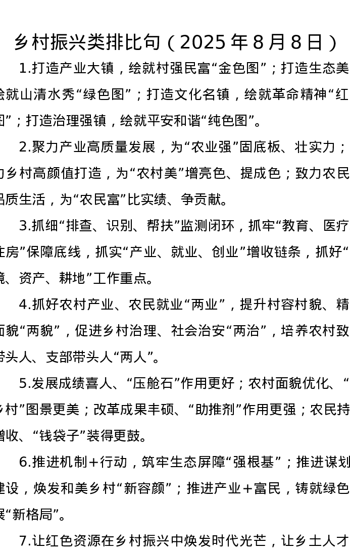 乡村振兴类排比句(2025年8月8日)