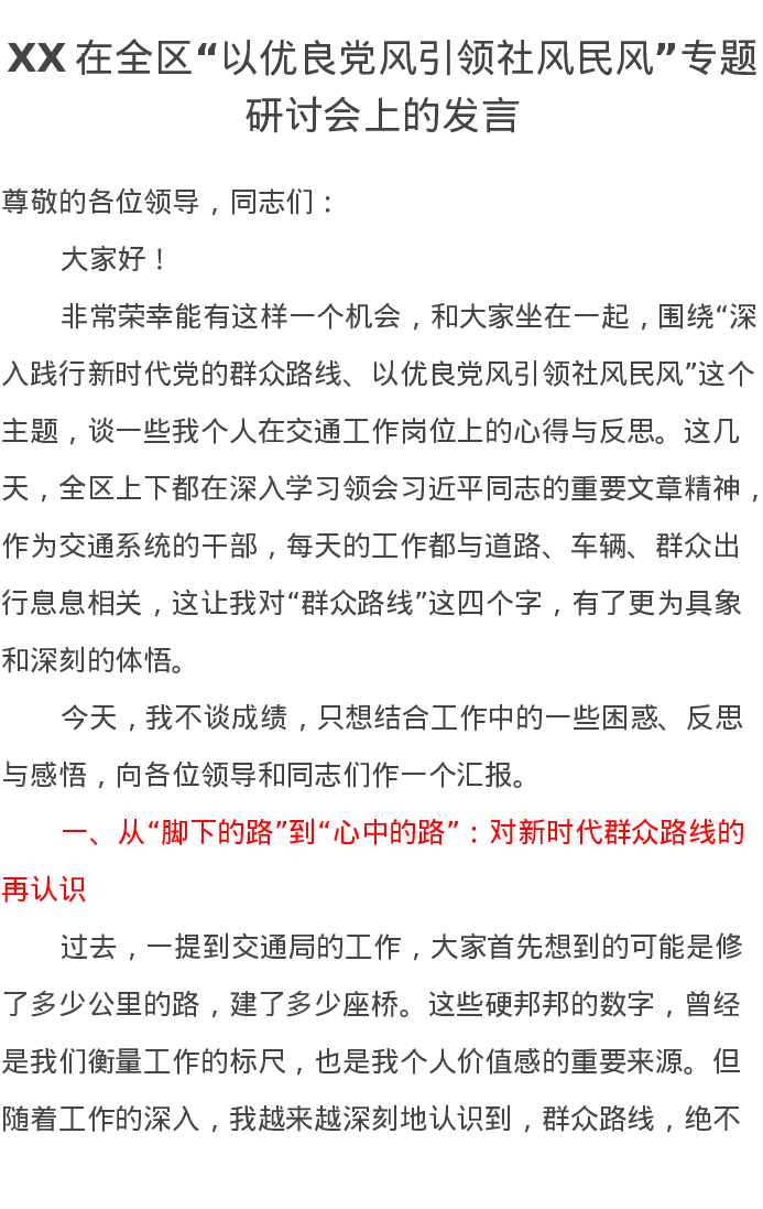 XX在全区“以优良党风引领社风民风”专题研讨会上的发言
