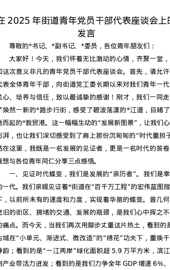 在2025年街道青年党员干部代表座谈会上的发言