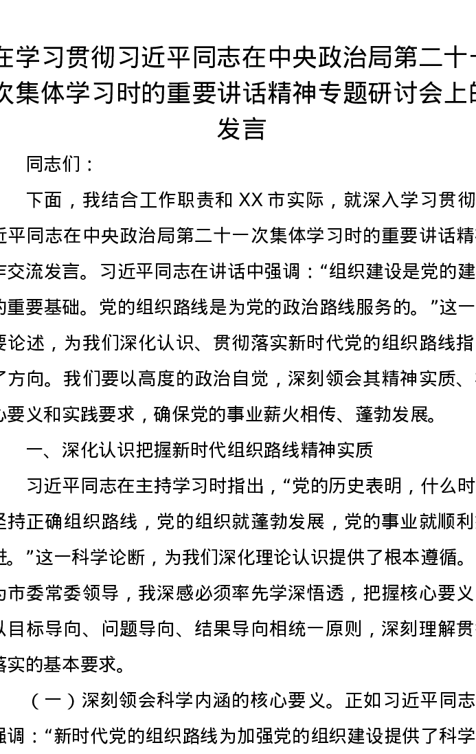 在学习贯彻习近平总书记在中央政治局第二十一次集体学习时的重要讲话精神专题研讨会上的发言