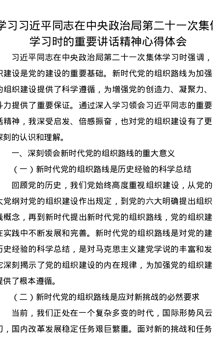 学习习近平总书记在中央政治局第二十一次集体学习时的重要讲话精神心得体会