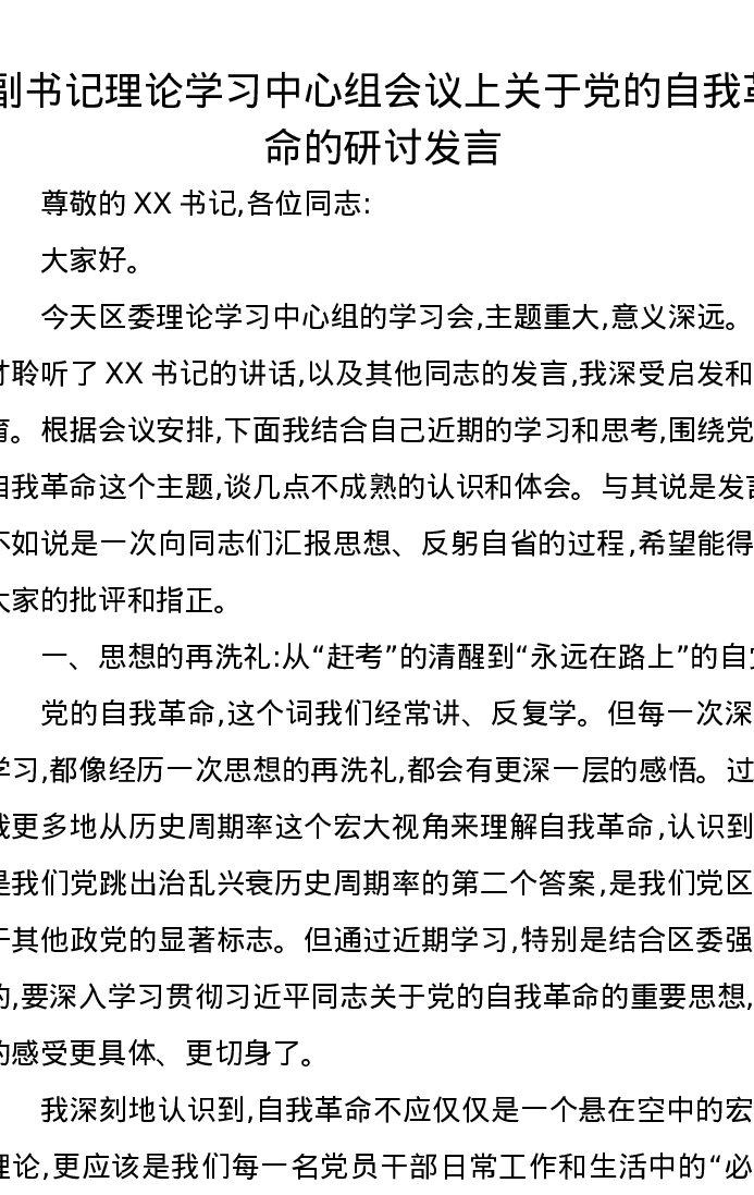 副书记理论学习中心组会议上关于党的自我革命的研讨发言