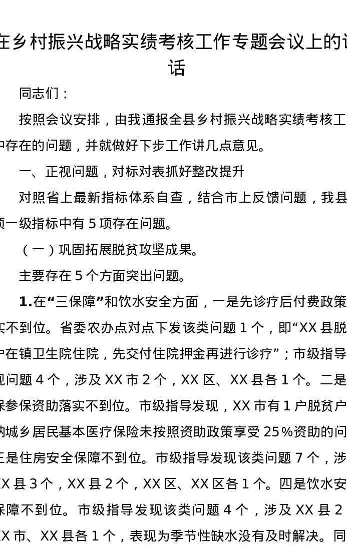在乡村振兴战略实绩考核工作专题会议上的讲话