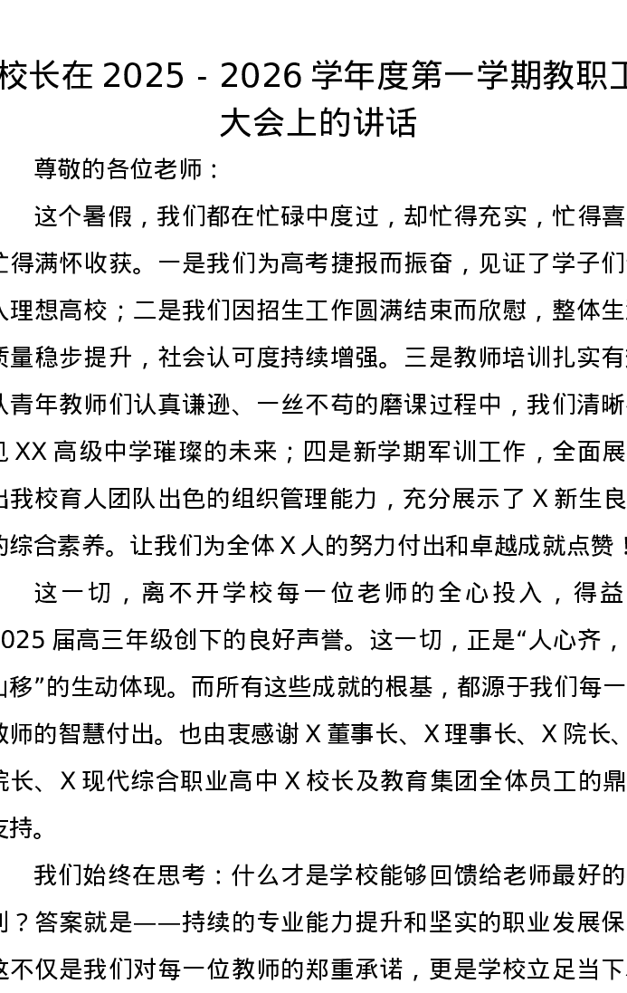校长在2025-2026学年度第一学期教职工大会上的讲话:以公能铸新魂,以日新启征程