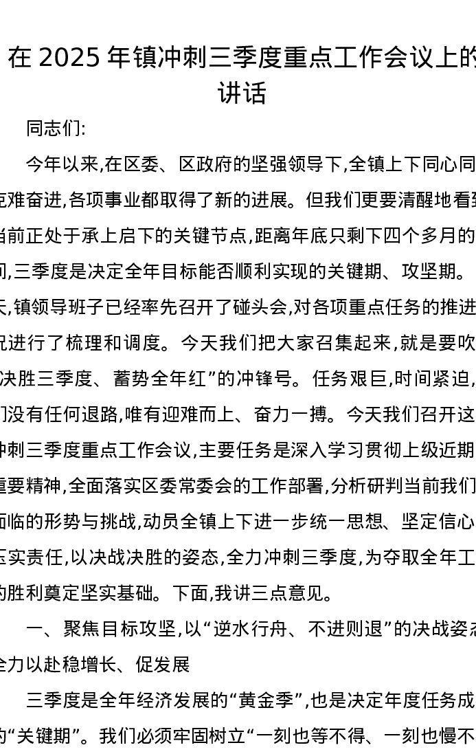 在2025年镇冲刺三季度重点工作会议上的讲话