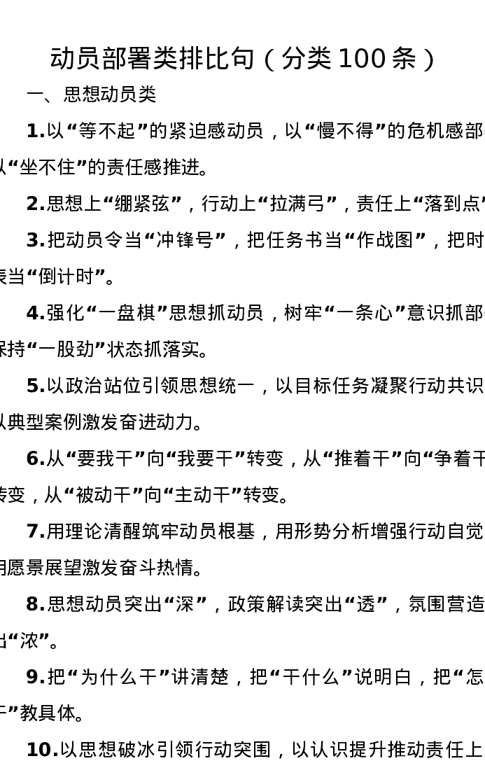 动员部署类排比句(分类100条)