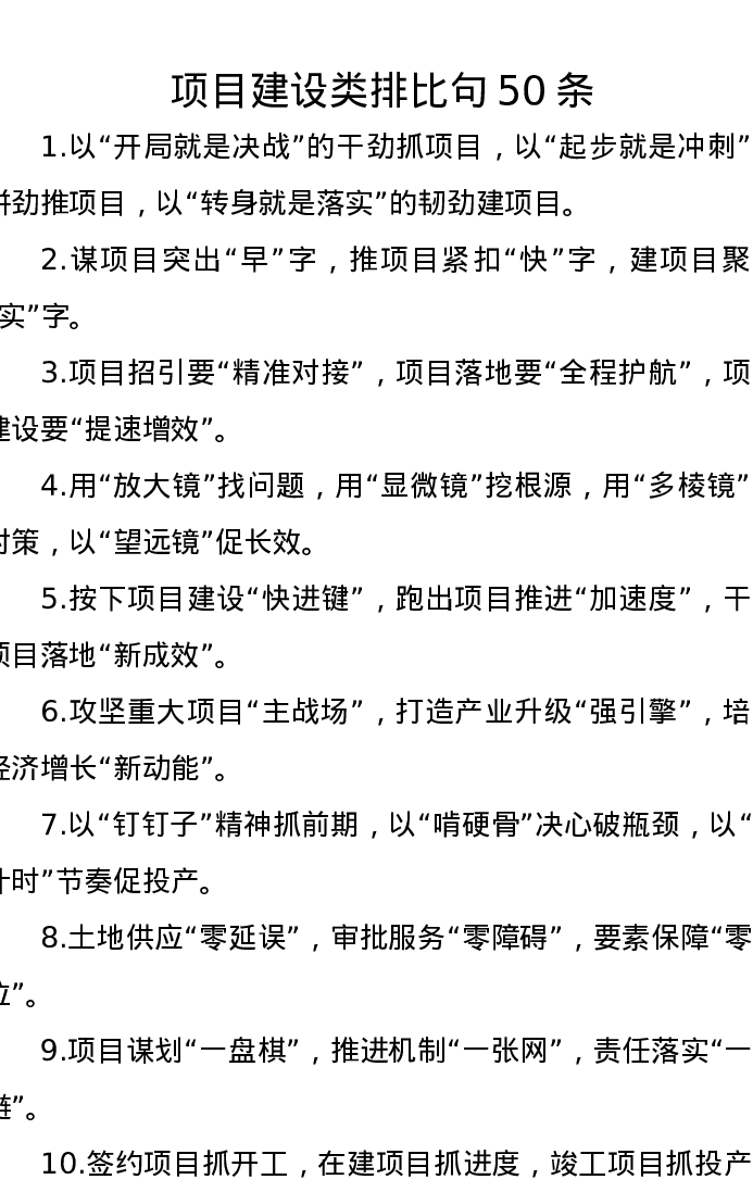 项目建设类排比句50条