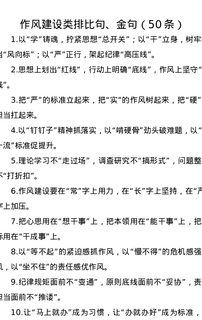 作风建设类排比句、金句(50条)