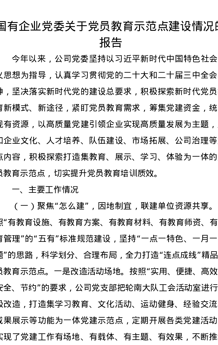 国有企业党委关于党员教育示范点建设情况的报告