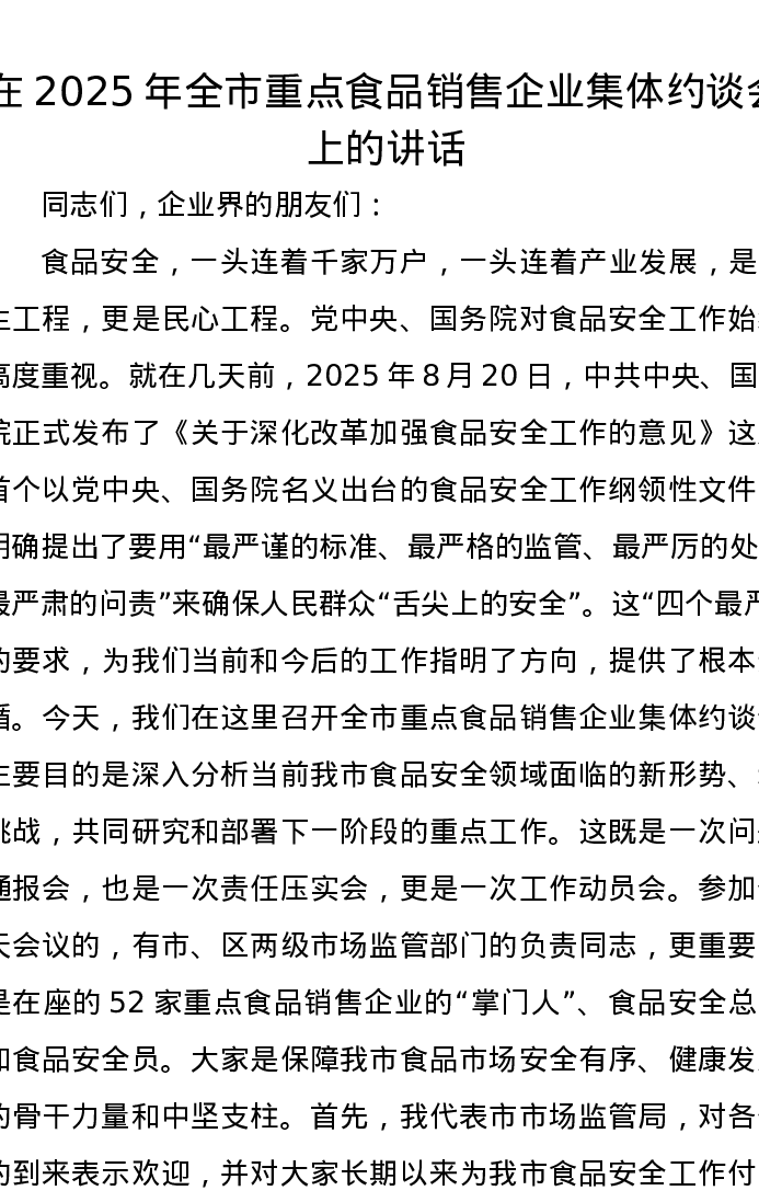 在2025年全市重点食品销售企业集体约谈会上的讲话