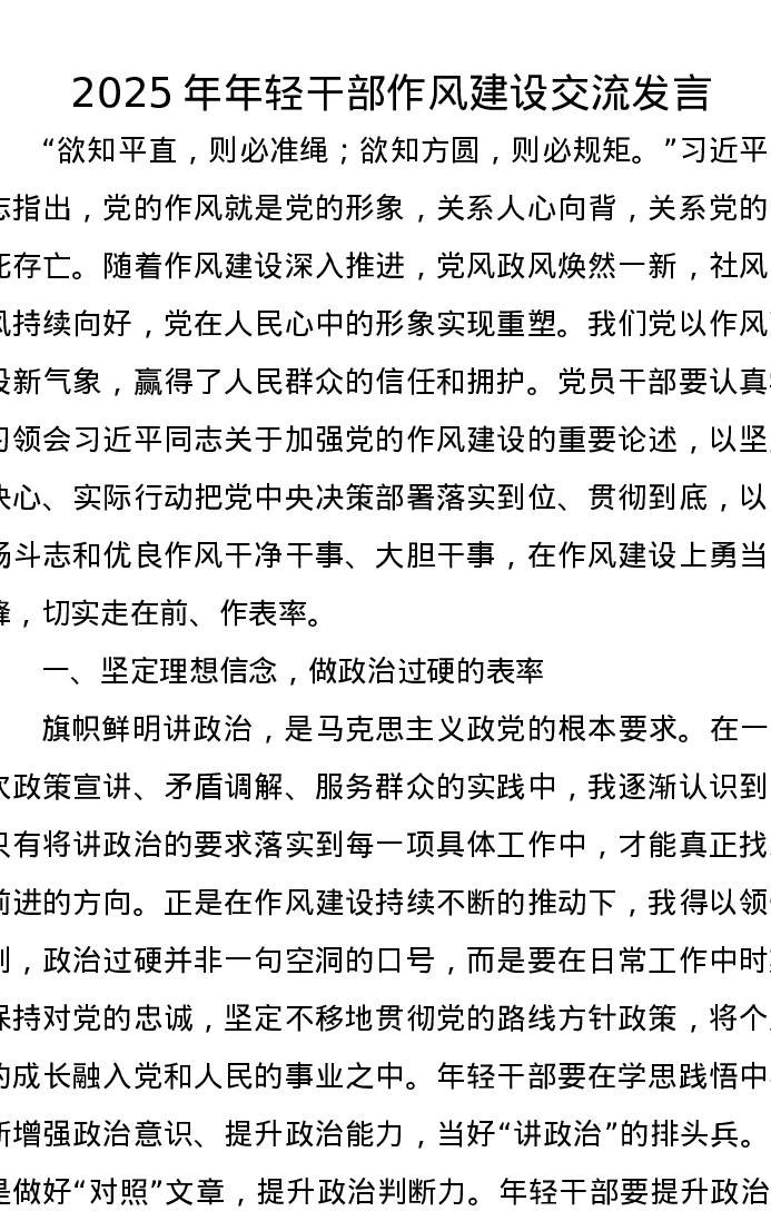 2025年年轻干部作风建设交流发言