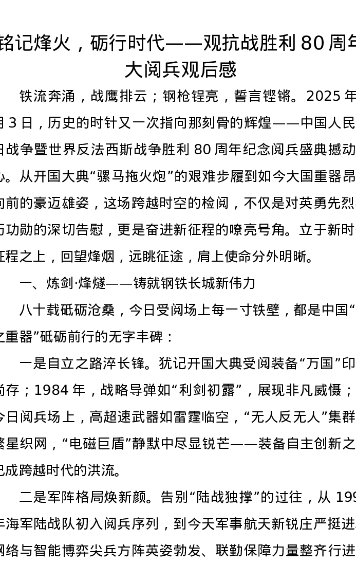 铭记烽火,砺行时代 ——观抗战胜利80周年大阅兵观后感心得体会
