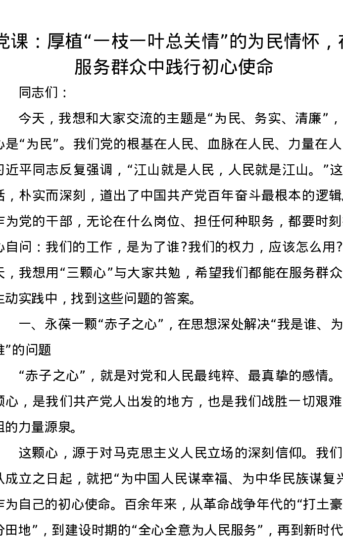 党课:厚植“一枝一叶总关情”的为民情怀,在服务群众中践行初心使命