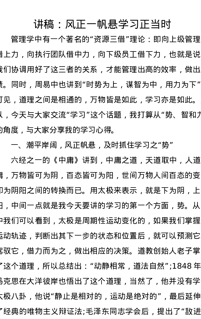 党课讲稿:风正一帆悬 学习正当时