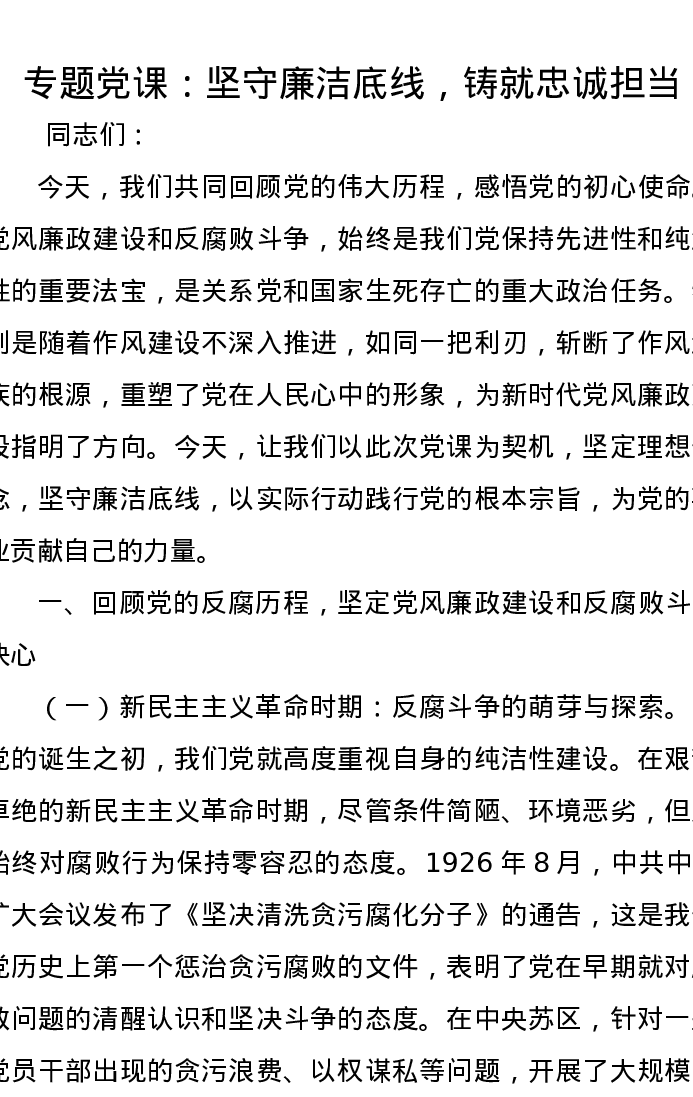 党课讲稿:坚守廉洁底线,铸就忠诚担当