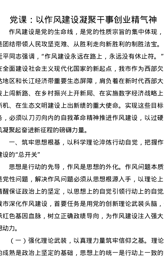 党课讲稿:以作风建设凝聚干事创业精气神