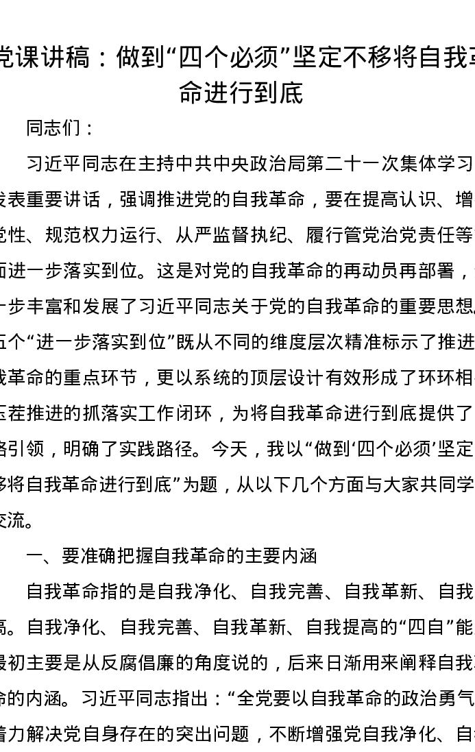 党课讲稿:做到“四个必须” 坚定不移将自我革命进行到底