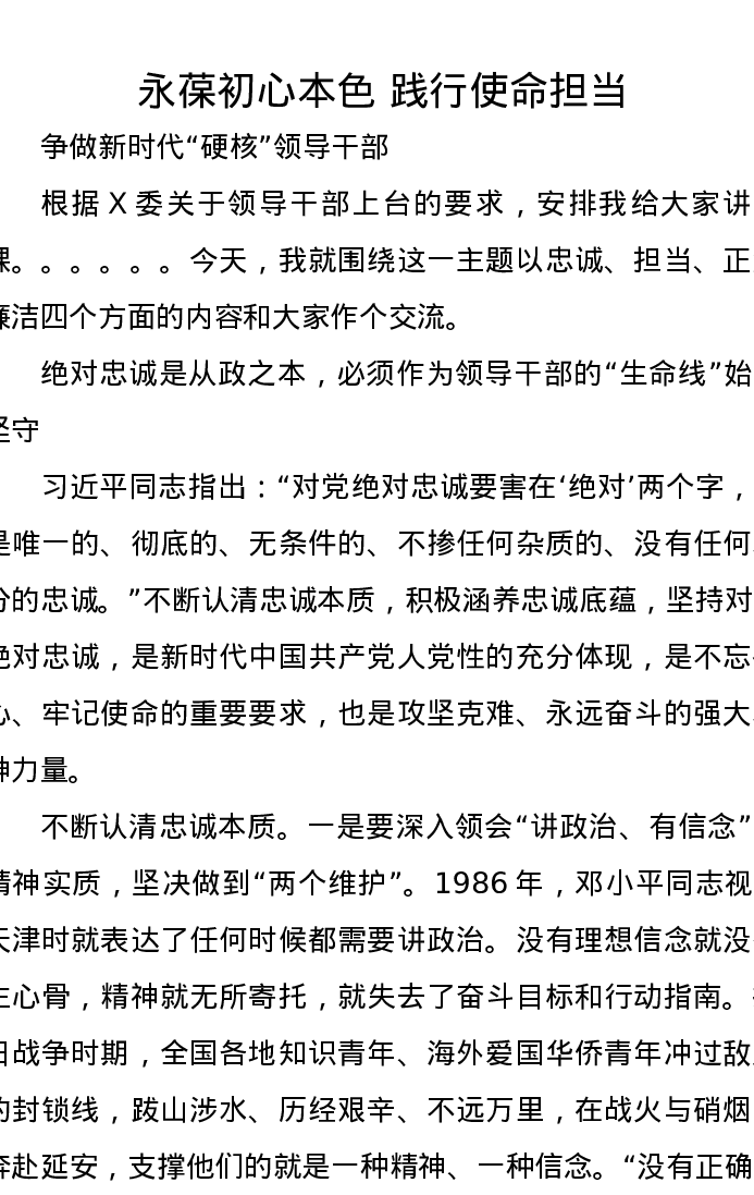 纪委书记讲党课讲稿:永葆初心本色践行使命担当争做新时代硬核领导干部