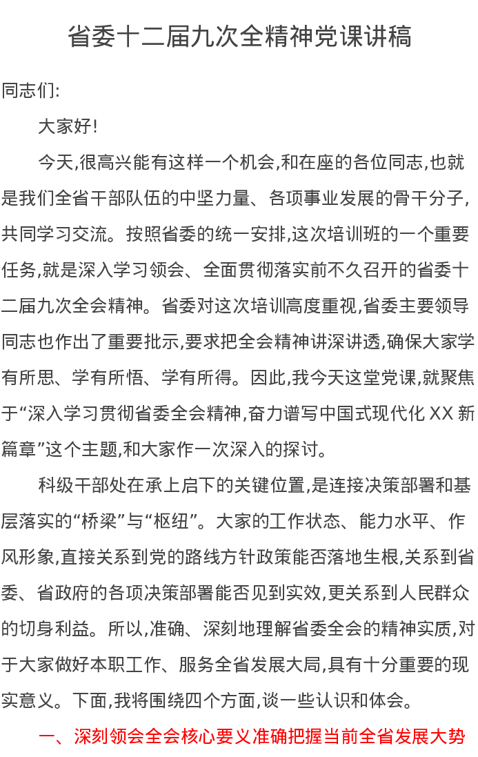 省委十二届九次全精神党课讲稿