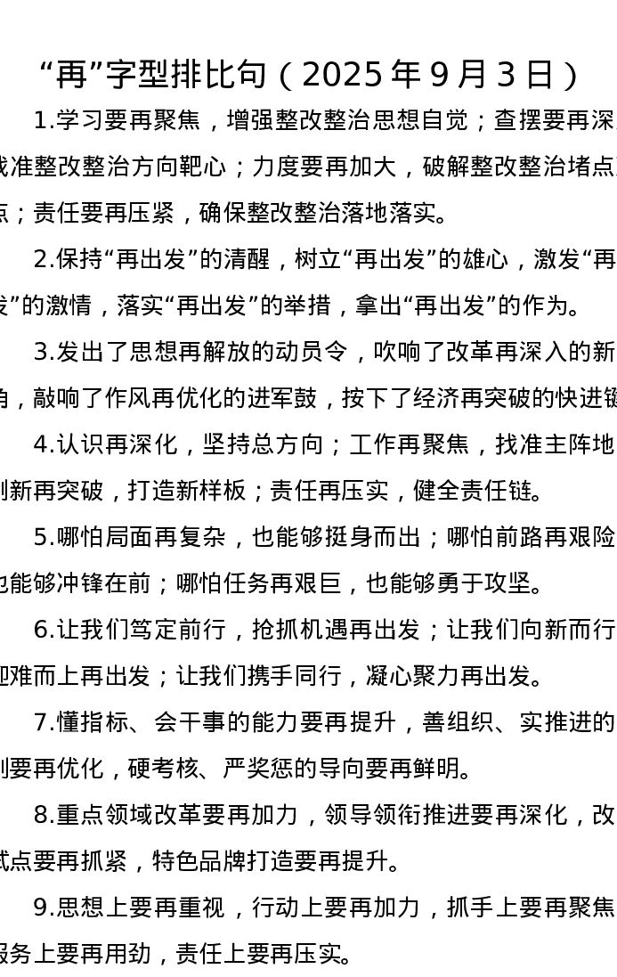 “再”字型排比句(2025年9月3日)