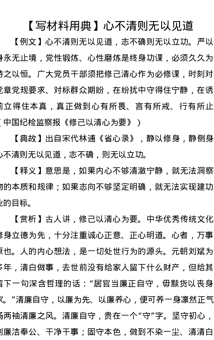 【写材料用典】心不清则无以见道