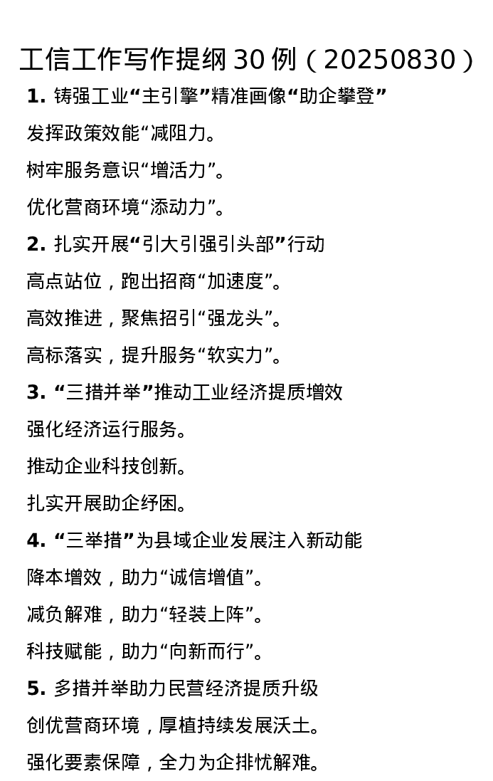 工信工作写作提纲30例(20250830)