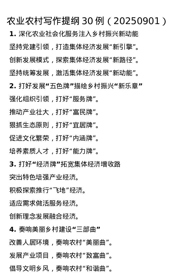 农业农村写作提纲30例(20250901)