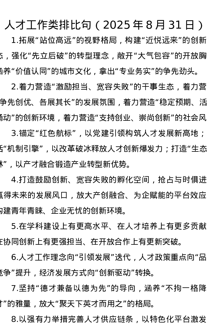 人才工作类排比句(2025年8月31日)