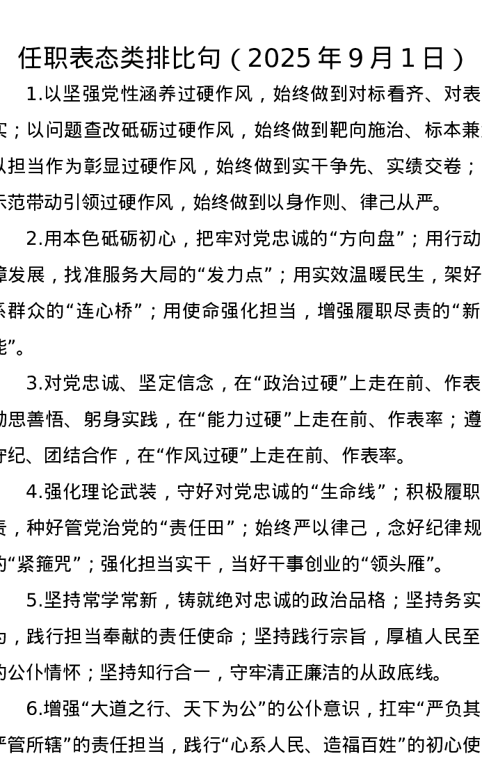 任职表态类排比句(2025年9月1日)
