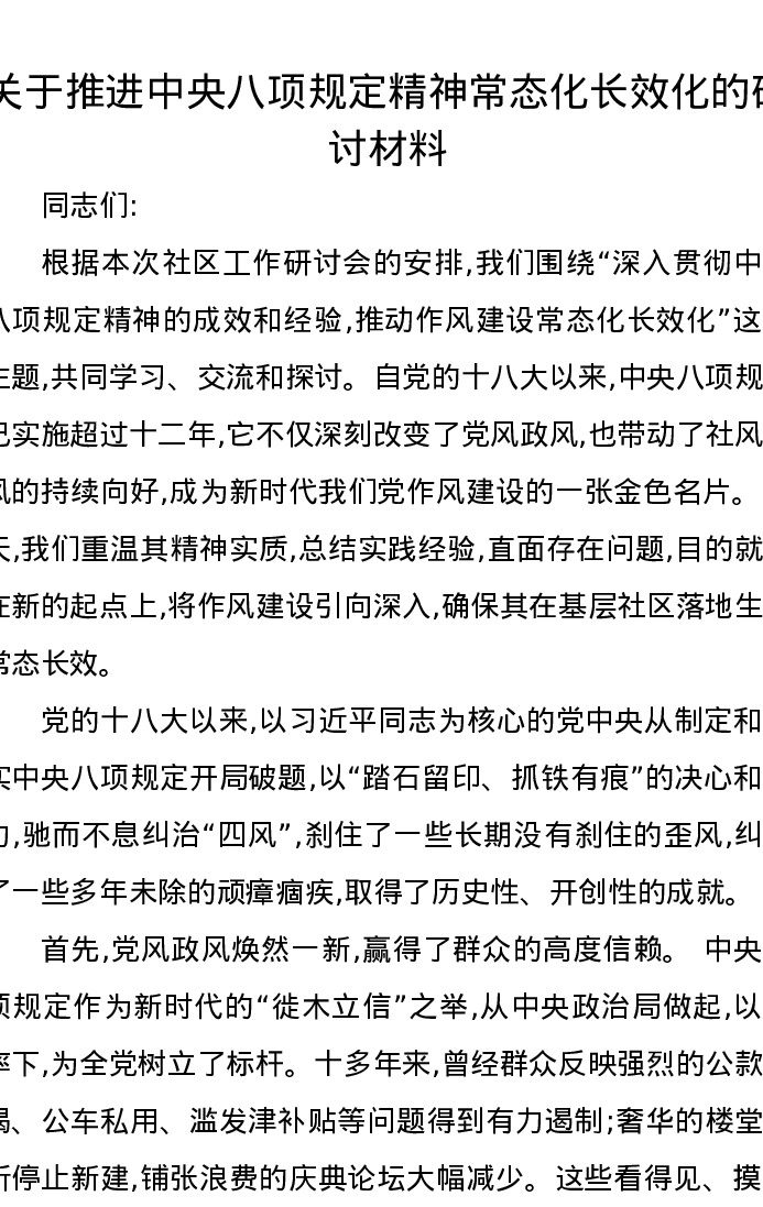 关于推进中央八项规定精神常态化长效化的研讨发言材料