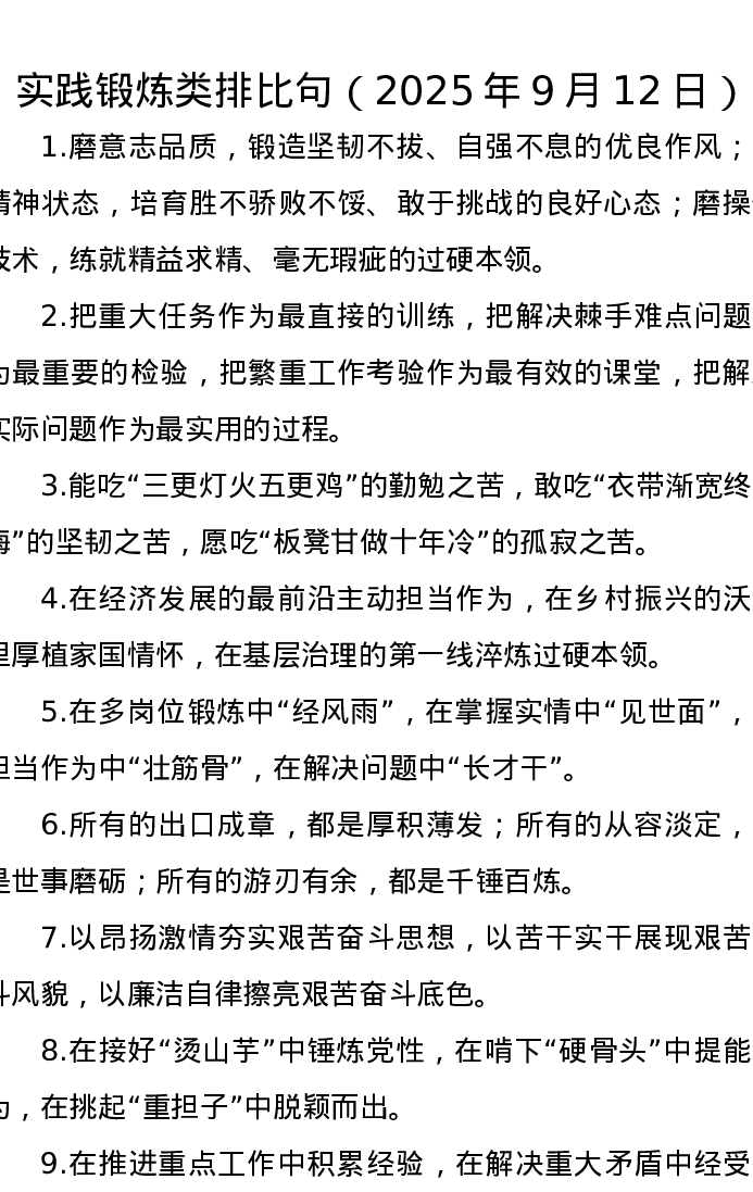 实践锻炼类排比句(2025年9月12日)