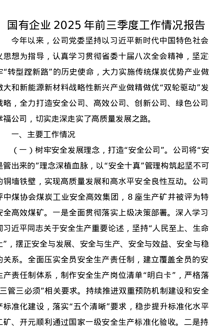 国有企业2025年前三季度工作情况报告