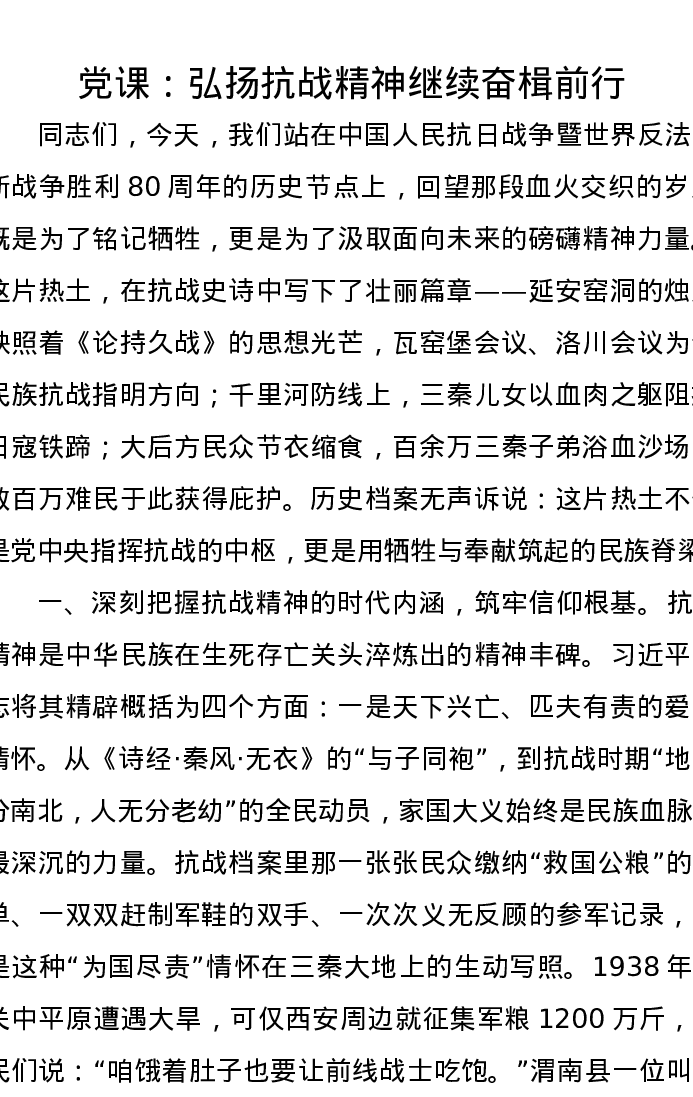 党课讲稿:弘扬抗战精神 继续奋楫前行