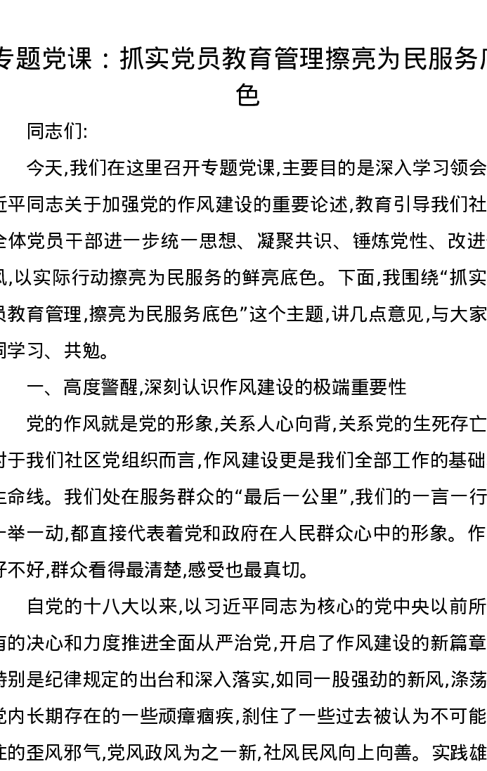 专题党课讲稿:抓实党员教育管理 擦亮为民服务底色